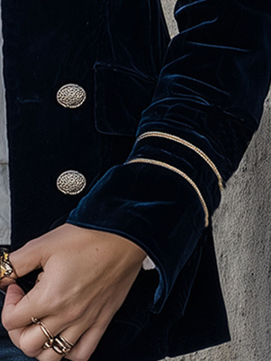 Veste Retro en Velours Bleu Foncé à Double Boutonnage