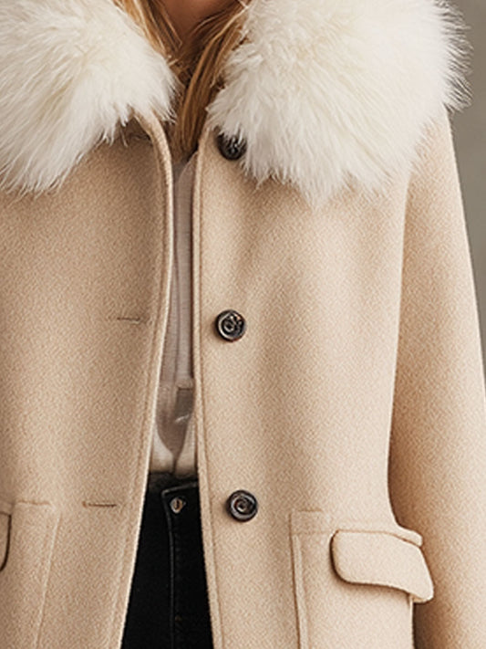 Veste en Laine Beige avec Col en Fourrure : Élégance et Chaleur au Boutonnage Unique