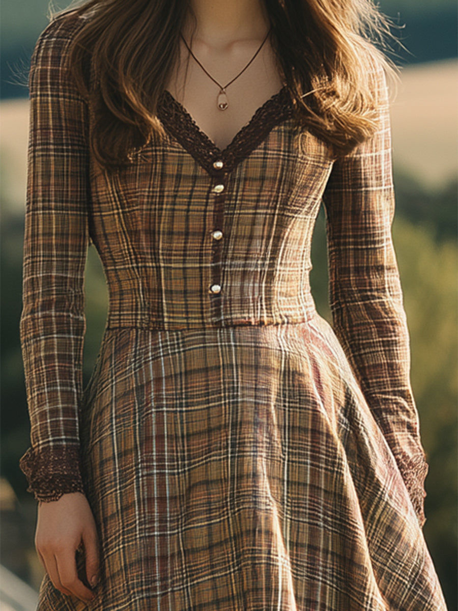 Découvrez l'élégance sans effort avec notre Robe Maxi V-neck en Dentelle à Carreaux Marron Occidental. Cette pièce raffinée allie le charme des carreaux classiques à la délicatesse de la dentelle, créant un look à la fois sophistiqué et empreint de l'esprit Western.