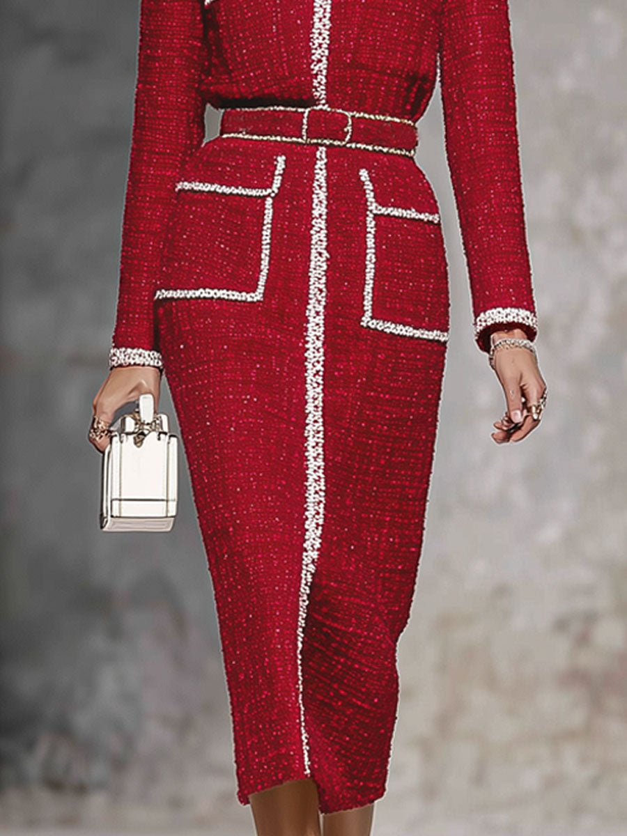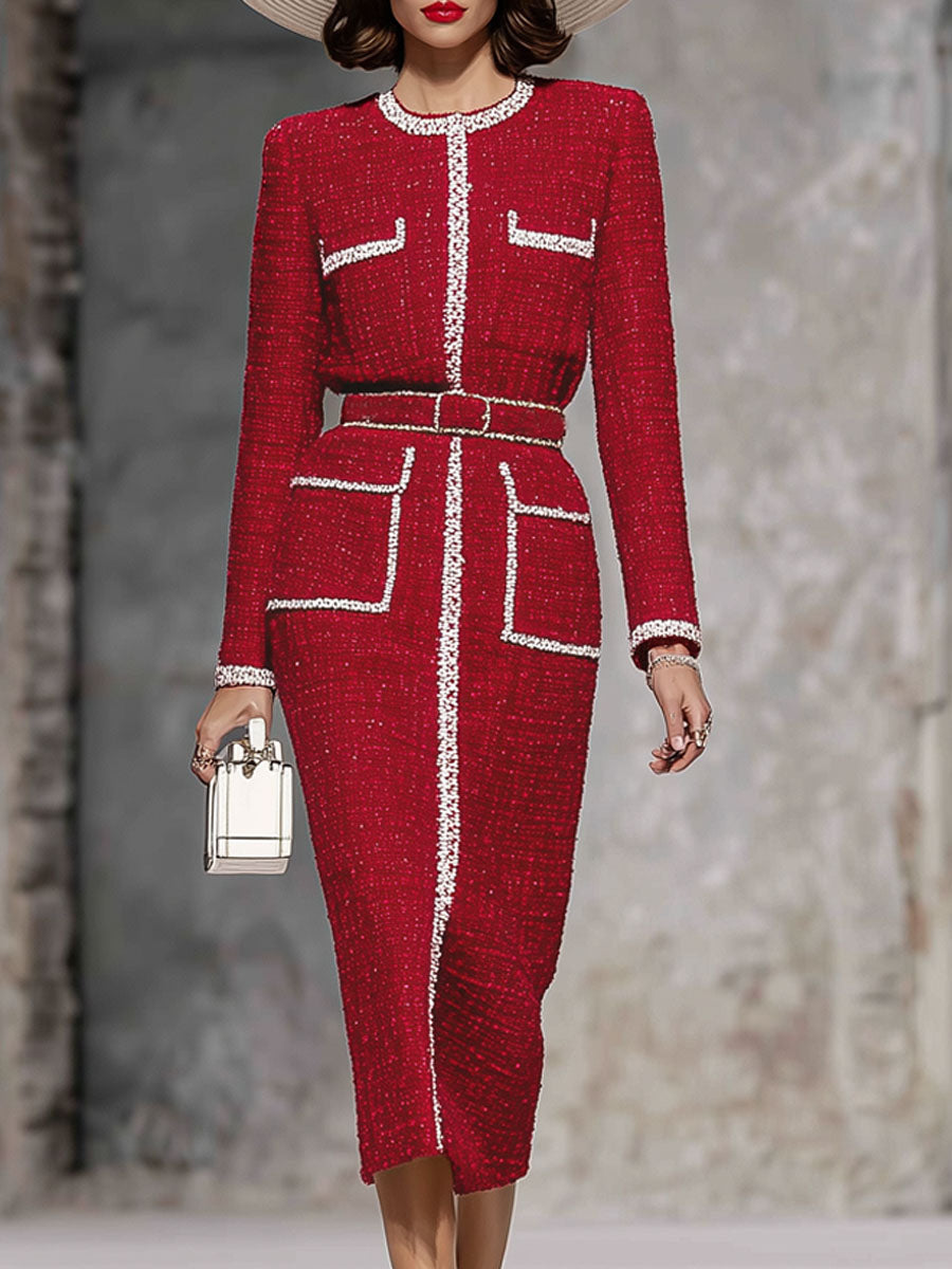 • Design : Col rond élégant, détail en sangle, ceinture incluse.