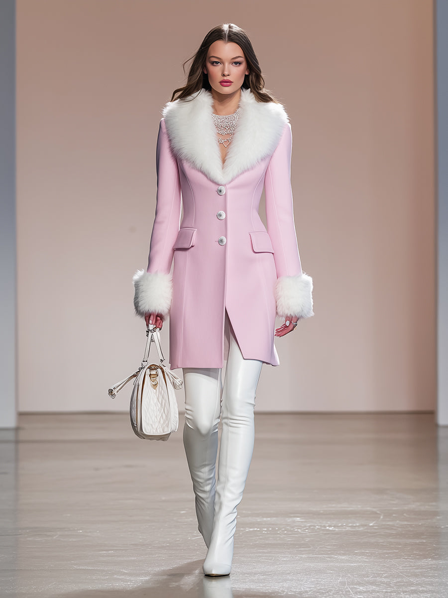Veste en Fourrure Patchwork Rose Élegante avec Détails Boutonnés