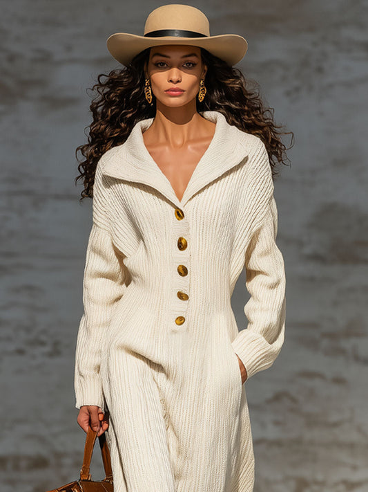 Combinaison Tricotée à Col Revers et Boutons - Style Décontracté et Élégant
