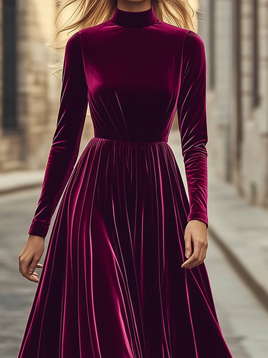 Robe Maxi en Velours à Col Montant – Style Rétro, Expédition Rapide en 24 Heures