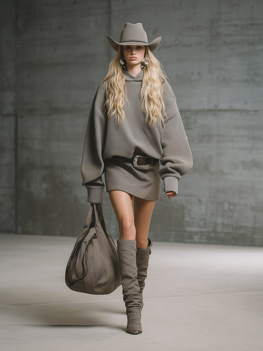 Robe Mini Waffle Luxe à Capuche et Décolleté Plongeant