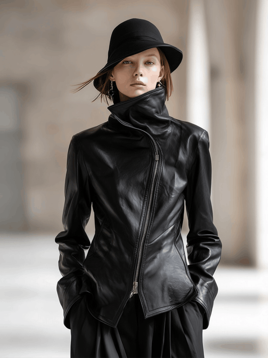 Veste en PU Noir avec Col Haut et Zip Latéral Chic