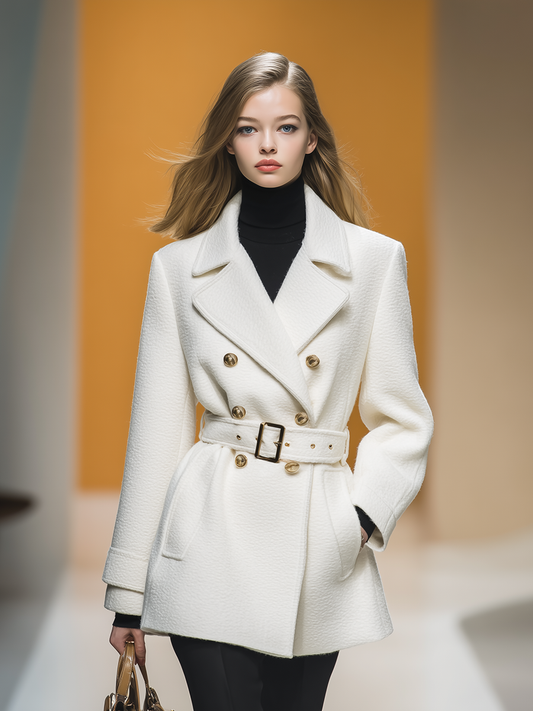 Élégant Manteau Long en Tweed Vintage à Double Bouton