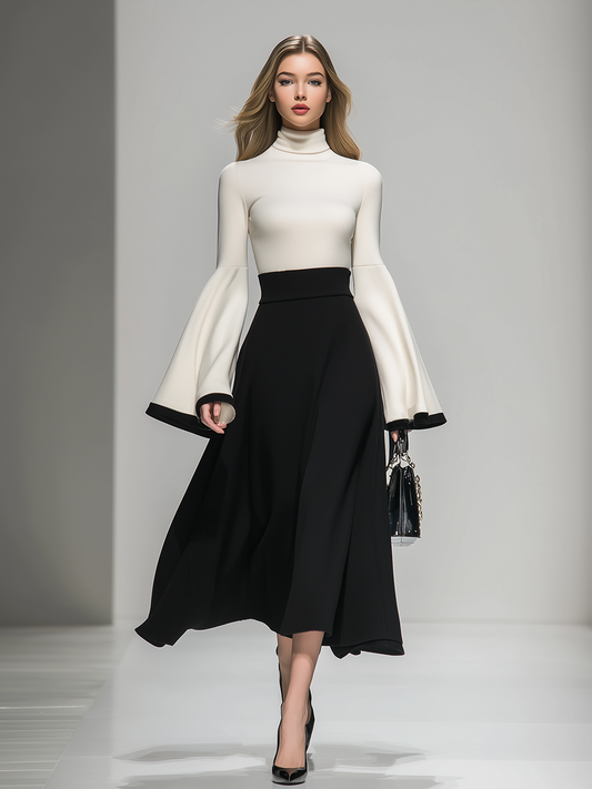 Robe Maxi Chic à Col Montant avec Détails Contrastés
