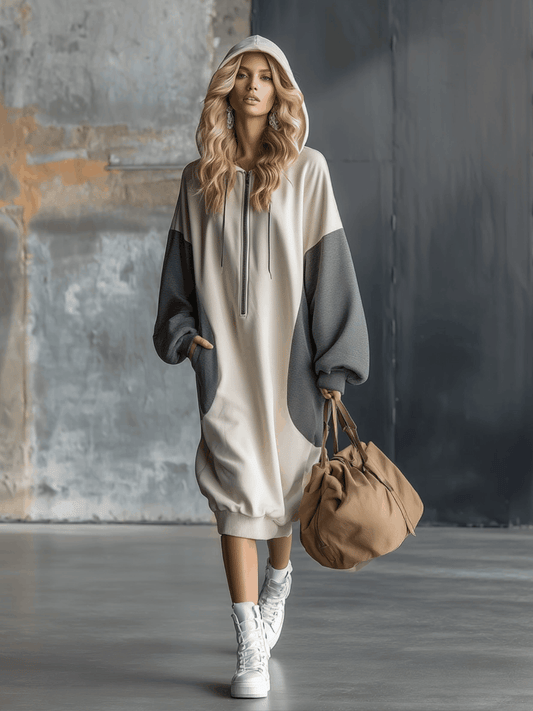 Robe Midi Sportive à Capuche avec Manches Contrastées - Style Décontracté