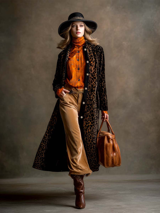 Élégant Blazer en Velours à Imprimé Léopard Vintage