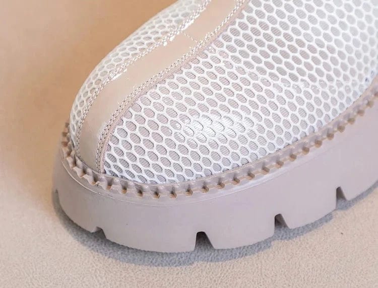 Le secret de ces bottines réside dans leur mélange de cuir véritable et mesh respirant, vous garantissant fraîcheur même lors des journées les plus intenses. Avec un talon chunky et une semelle plateforme, elles vous assurent une démarche assurée sur tous les terrains. La fermeture éclair permet de les enfiler facilement, vous préparant à l'aventure en un clin d'œil.