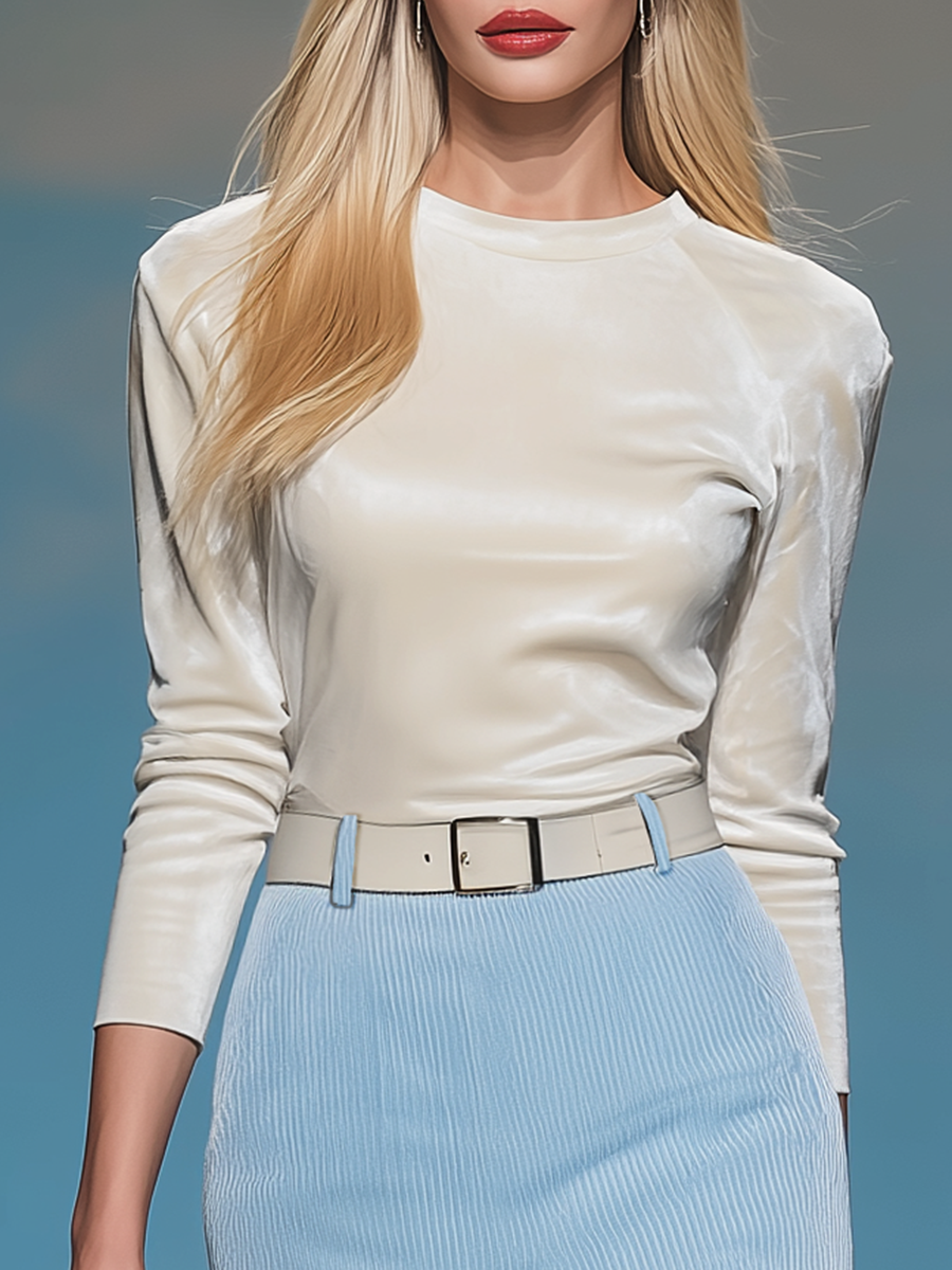 Découvrez l'ensemble T-shirt en velours à col rond rétro et jupe en velours côtelé de Saint-Texane, une pièce essentielle qui allie élégance intemporelle et influences Western subtiles. Confectionné dans un velours côtelé texturé de haute qualité, cet ensemble évoque une sophistication naturelle, parfaite pour la femme moderne qui recherche un style effortless chic.
