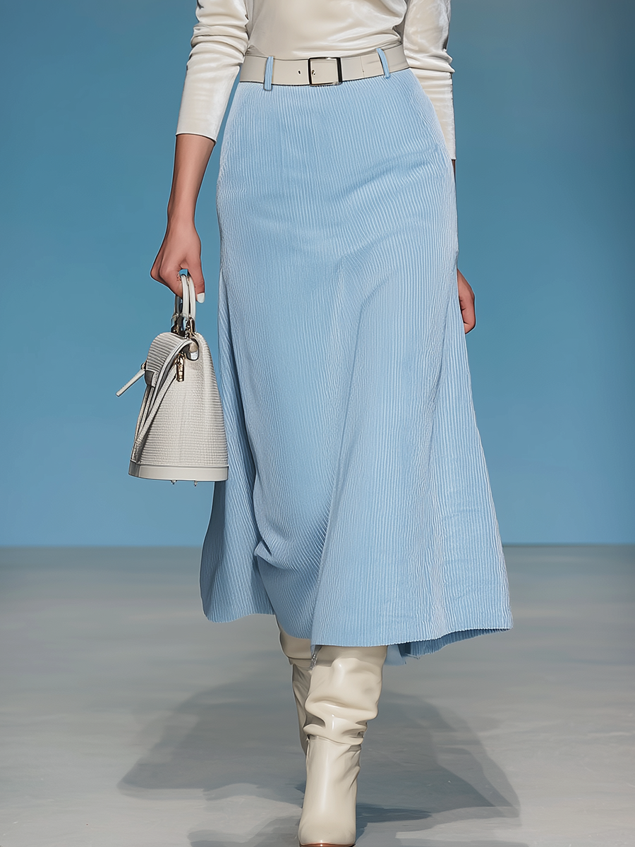 Le T-shirt en velours dégage une douceur opulente, tandis que la jupe en velours côtelé apporte une touche de flair rétro grâce à sa taille haute et sa coupe en A. Associez cet ensemble à des bottes chevilles pour un look décontracté ou à des mocassins pour une allure plus classique. Complétez votre tenue avec un béret ou des bijoux audacieux pour un style affirmé.
