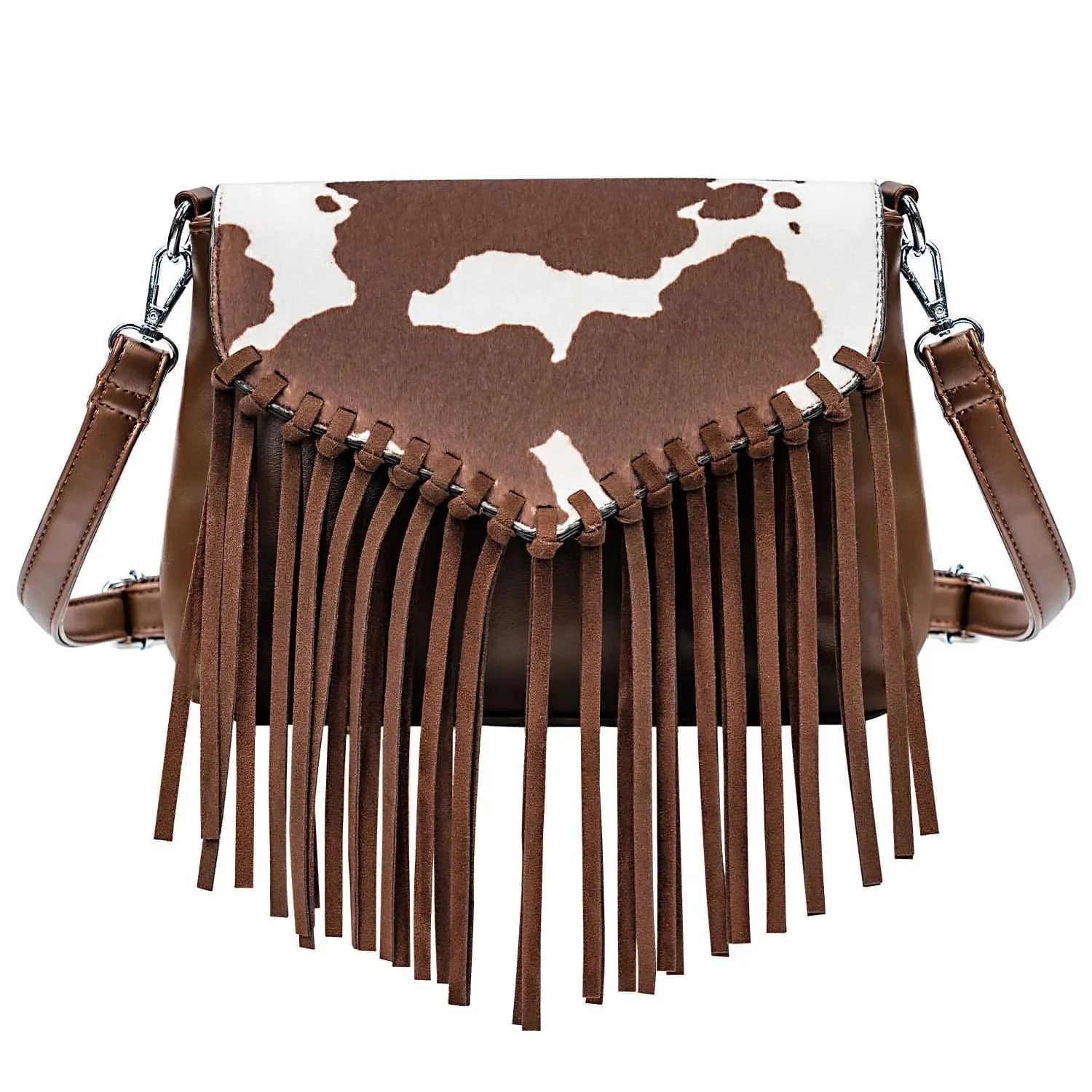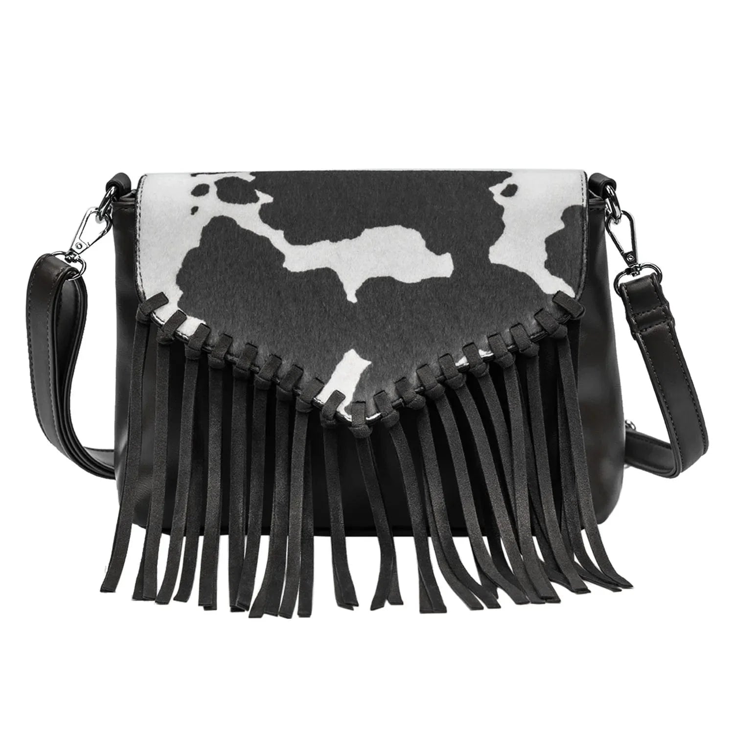 Découvrez notre sac cowgirl au motif vache, disponible en noir et marron, un accessoire qui allie chic effortless et tendance Western. Conçu pour les aventurières modernes, ce sac s'inspire des cowboys et des grands espaces, tout en restant résolument sophistiqué.